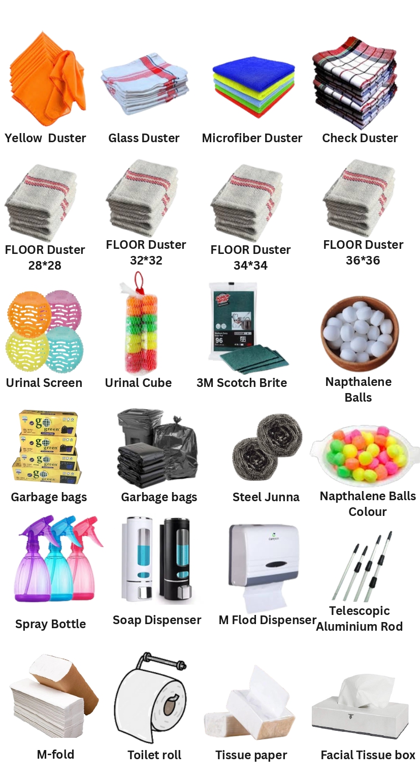 They are authorized dealers for some of the reputed housekeeping brands in India, like Zrak Air Fresheners, Everbub Hand Wash, Bang Bang, Herbal Hunter, Clean India Garbage Bags, Diversey Tasky, Babron ( hotel guest amenities), Hygiene Plus Plus, White Lotus Tissues, Fregzone Room Fresheners, Gala Brooms, and Unique Floor Wipers. With a strong reputation across Dehradun district and surrounding areas, they stock the best quality housekeeping products for every professional environment.