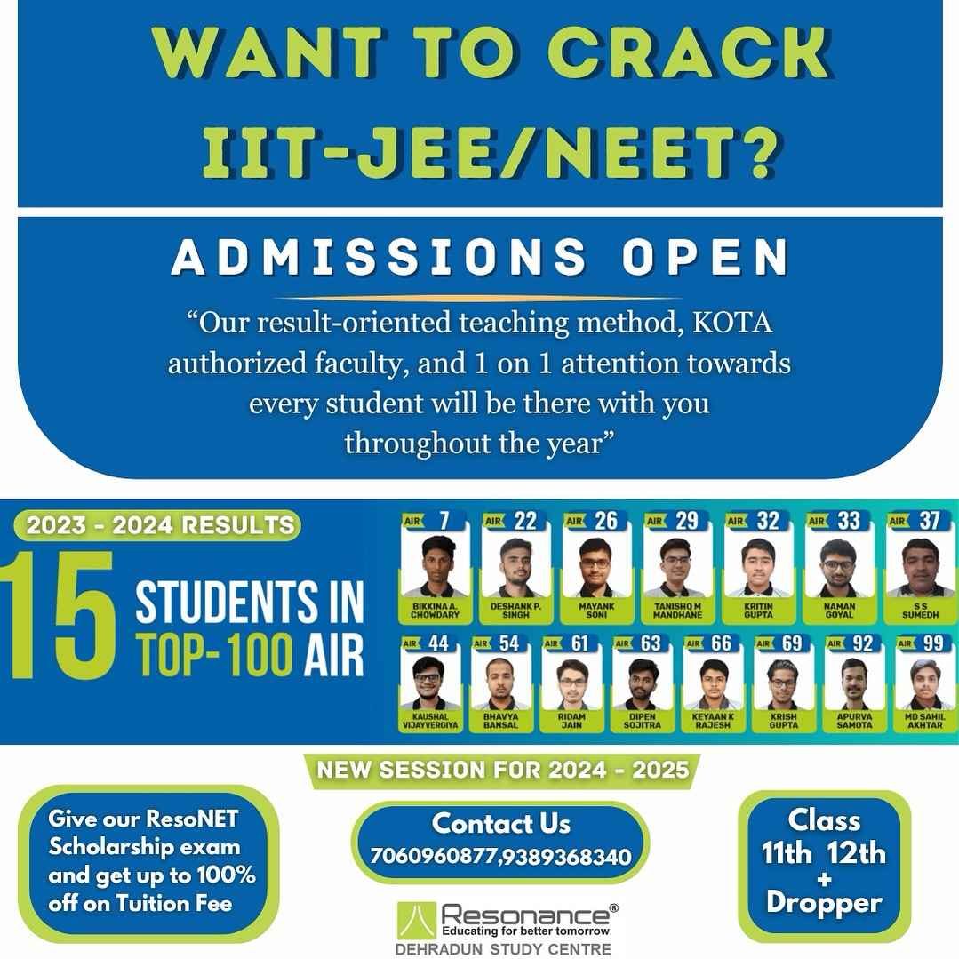 Join Resonance Dehradun, the best coaching for JEE & NEET where every student’s dream finds resonance, and together, we elevate academic aspirations to unprecedented heights.